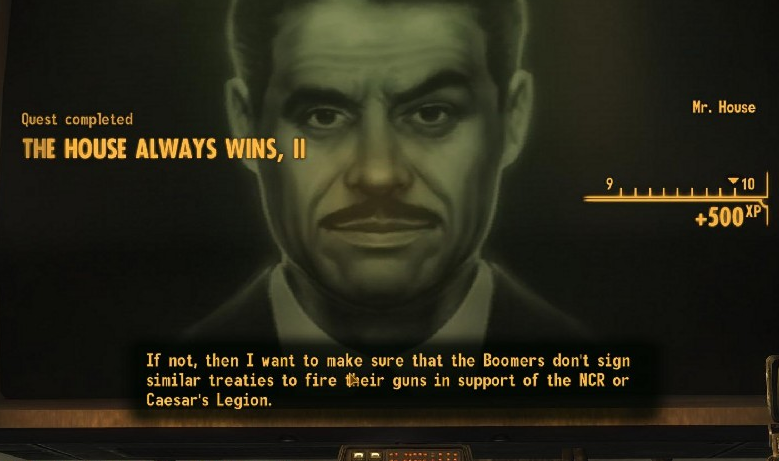 这里开始,玩家需要从NCR、Yes Man、Mr.