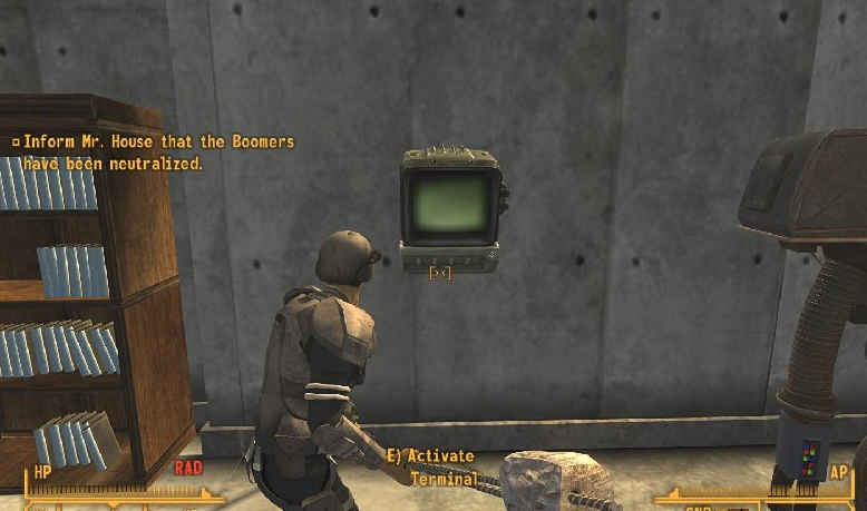 不管是忽略还是获得Boomer的支持,都要去向Yes Man回报。然后去Lucky 38使用Mr. House边上的终端打开大门,去杀死Mr. House。然后去找Yes Man回报,让他进驻Lucky 38。