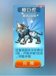 点评: 糖白虎拥有3倍的任意奖励关卡得分技能,不仅仅是比闪电豹高,而是比闪电豹奖励的模式多,但是最大的缺点就是超级奖励不会变大。不过作为3倍奖励,糖白虎的能力还是不能小视的。开局冲刺和终极冲刺有和没有差别不是很大,而满级100级的它也注定完爆之前的坐骑。