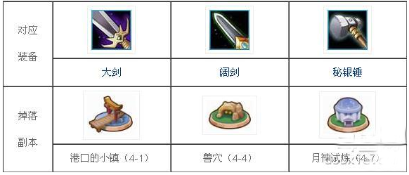 2、还有三种秘银锤、阔剑跟大剑只能在普通副本中可以获得,基本上全部都是在第四章才有掉落。
