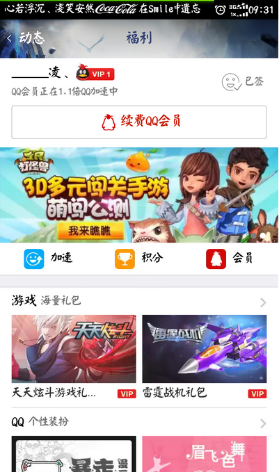 3选择与QQ好友玩的游戏用户可以领取福利礼包,QQ会员可以获得专属礼包