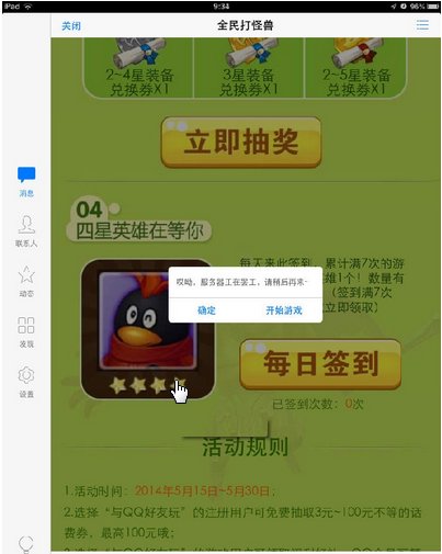 4选择与QQ好友玩的游戏用户每天免费获得一次抽奖机会