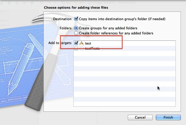 2. 添加到工程,一定要注意勾选红色框框处,默认是不勾选的
