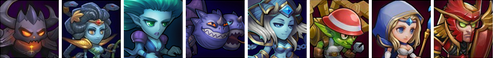 熊猫、蓝胖、拍拍、娜迦:输出型副T,熊猫酒雾和击退、蓝胖嗜血、娜迦网和唱歌兼有辅助或控制,娜迦打物理队有时可单T。