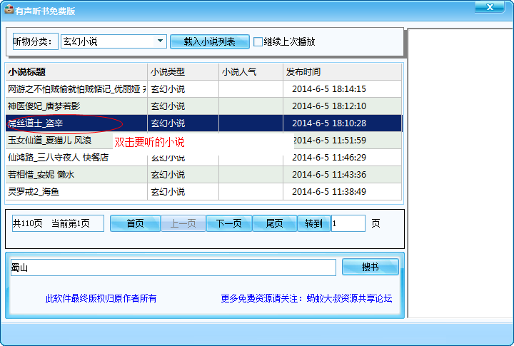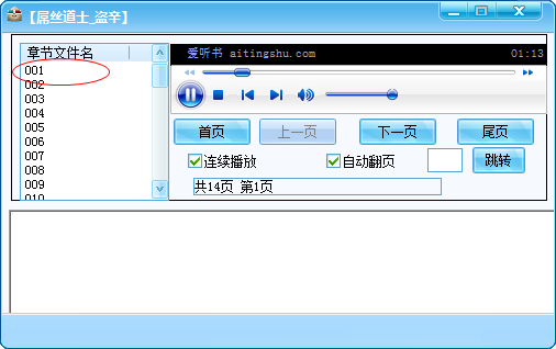 5、然后就可以在左边看到该小说的章节列表,双击章节序号就可以开始听书了