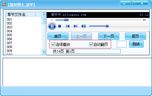 6、勾选“连续播放”和“自动翻页”的话,会在播放完一章之后自动播放下一章,无需手动翻页