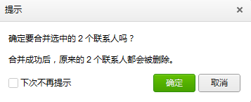 你可以通过该功能合并相同的联系人,勾选重复的联系人后点击顶部的「合并」按钮,在窗口右侧编辑并确认联系人信息后点击「保存」,合并后之前的联系人将会被删除。