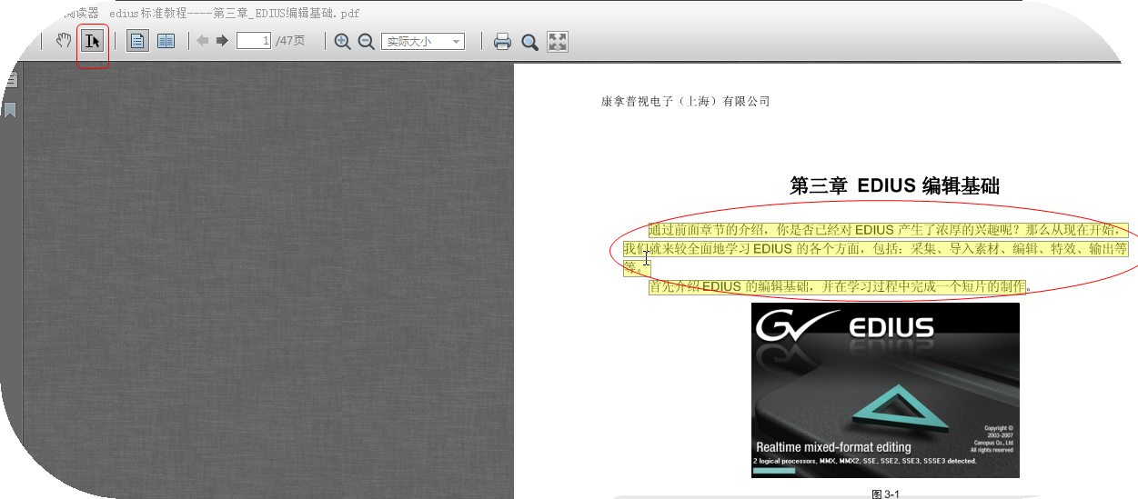 3 如果你想添加某段话到标签去,就先点左上角“选择”,然后通过鼠标选取一段话,