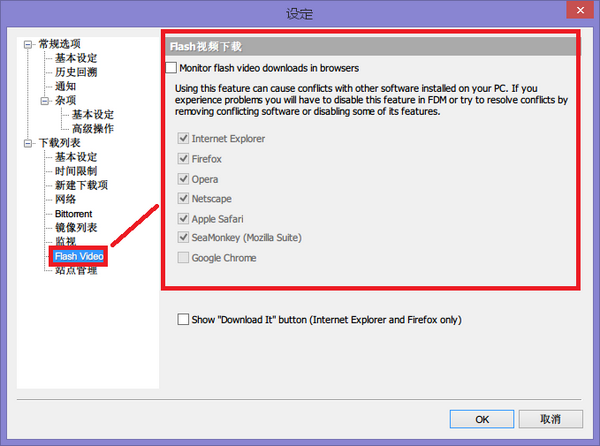 勾选最小化启动,这样做是为了保证浏览器调用FDM后只弹出FDM下载对话框,而看不到主界面,进一步做到静默下载