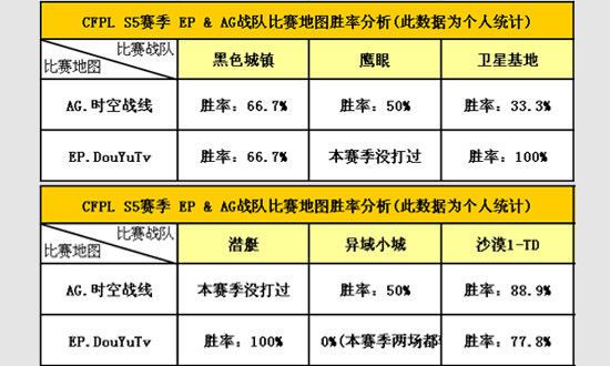 其次从双方比赛地图的胜率来分析,AG和EP到目前为止均有一张地图没有打过(分别是:潜艇和鹰眼),其他双方都进行的爆破图中,黑色城镇双方不分伯仲,而卫星基地,异域小城EP都保持了百分百胜率!而团队模式沙漠TD AG战队也仅比EP多赢了1局,总体来说EP整个赛季的状态还是略胜一筹的。