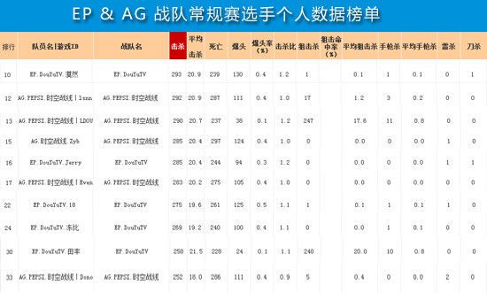 最后再从选手的个人数据榜单来看,双方则显得比较平均,很难在这一点上分出胜负!