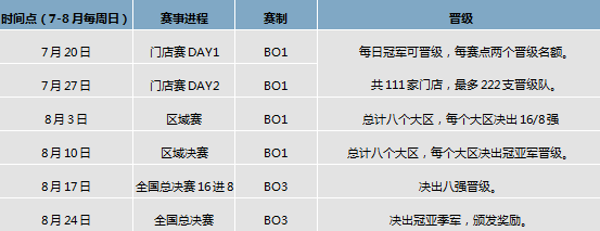 区域复赛:初赛晋级的战队将代表本门店参加线上区域复赛,跨区域战队可在晋级门店与其他门店代表队进行BO1淘汰赛。