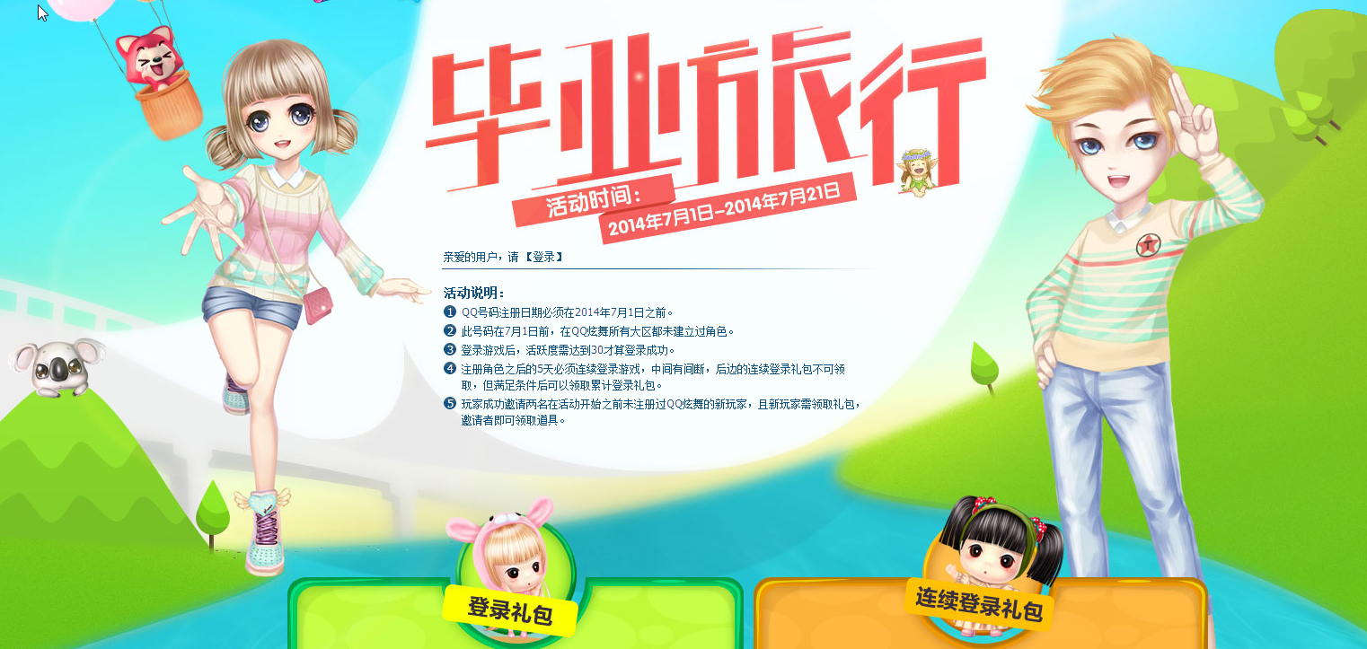 QQ炫舞惊喜毕业旅行活动时间2014年7月1号-2014年7月21号