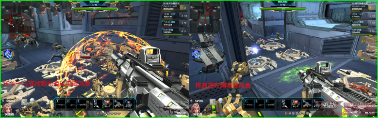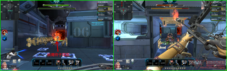 出口部分就不再细说,当铁鹰经过中门时,第2次起飞时房间内三个玩家齐变身英雄,果断将铁鹰打落,三把狂刀狠狠向铁鹰招呼,可惜小编没有变身英雄技能,不然也要上前助阵,此刻铁鹰同时受到三个变身英雄以及过道顶上16个聚能炮的猛烈伤害,迅速掉血 ,在临近基地前终于打掉。这里这种说下,为什么要在铁鹰通过中门即将步入后路通道才变英雄打落呢。