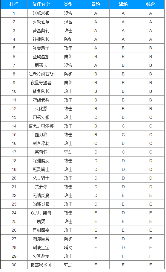 玩家可以在上表看出,每个英雄的专长,有攻击型的,防御型、辅助型,还有三者兼顾的混合型;而且表中还展示了每个英雄的能力情况;是适合刷副本,还是适合打战场,都有差异,玩家可以根据自己的选择,来搭配自己的英雄;