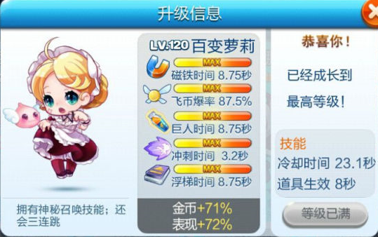 娜娜的冲刺是尤为好用,玩家可以自己操控,关键时刻保命,基本是长跑冠军!不过就是冷却时间能短点就更好了。