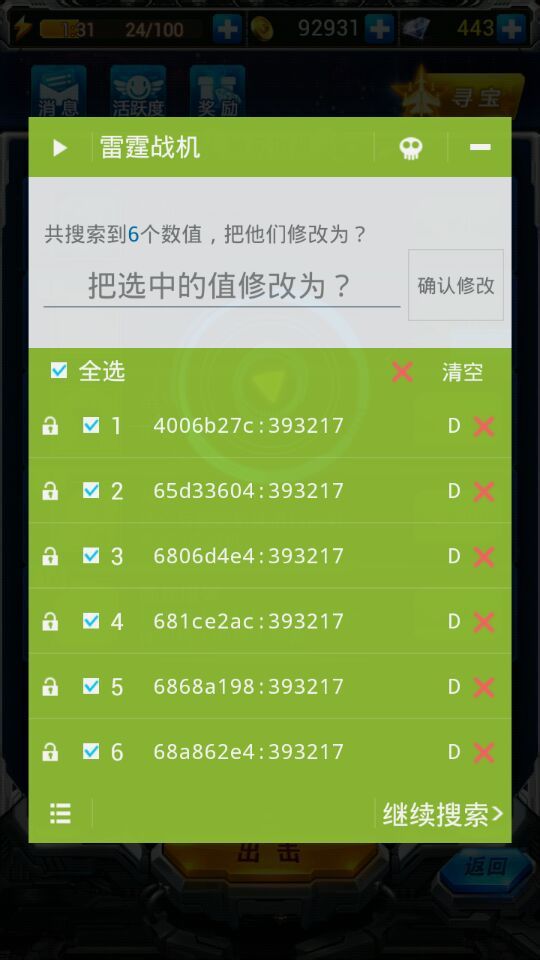 第六步:如果第一次搜索只有2-4个数据,那就重置搜索。再搜索一次393217,直到出现6-8个或者更多个数据。如果一直搜索不到这么多个,那就全部重头来一次吧。
