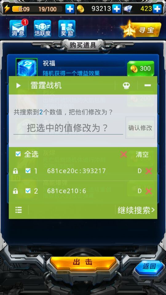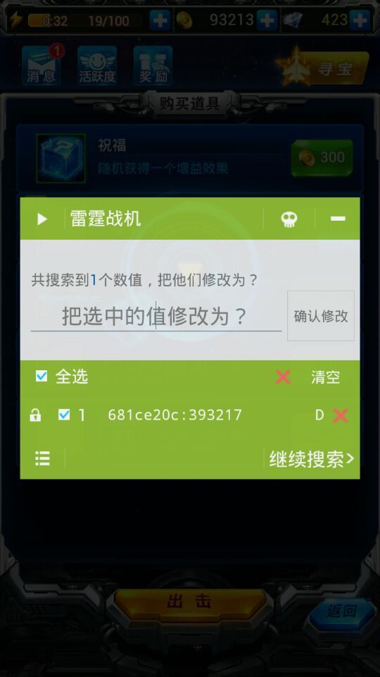 第五步:点击出击,在读取的那个圆圈出来之后,马上打开烧饼,搜索:393217 这个数值。