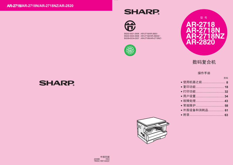 本节内容小编为大家精选带来的是pdf格式高清中文版SHARP夏普复印机AR2718说明书,本说明书详细介绍了夏普复印机AR2718的使用方法及使用注意事项,如果你想对夏普复印机AR2718有进一步的了解或是掌握更多关于夏普复印机AR2718的使用技巧,那就赶紧点击本文下方的下载地址进行下载查阅这份夏普复印机说明书吧!
