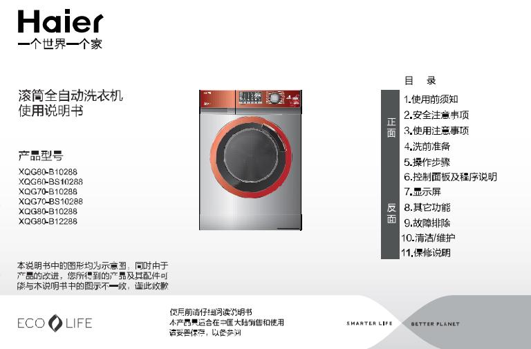 海尔xqg60 10266aw洗衣机使用说明书pdf电子