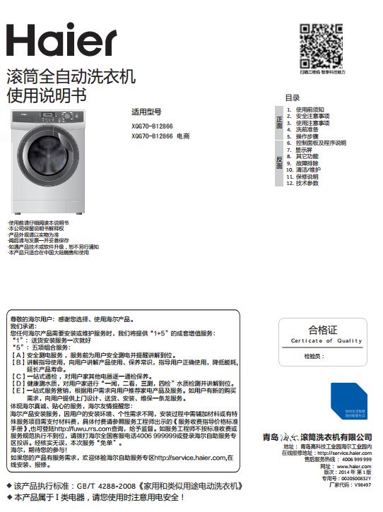 海尔洗衣机xqg70b12866怎么操作呢?这里分享的是海尔xqg70 b12866洗衣机说明书,pdf电子版haier海尔XQG70-B12866说明书,海尔说明书免费下载。