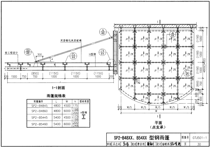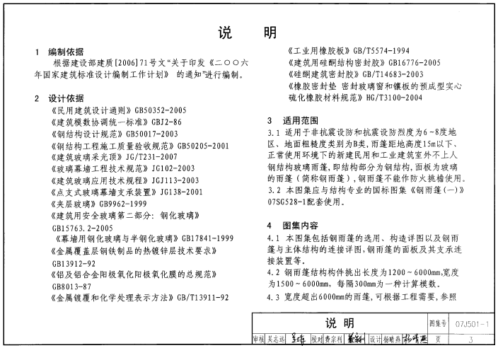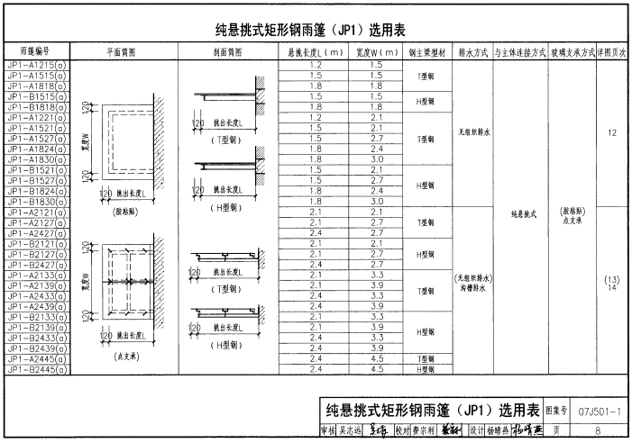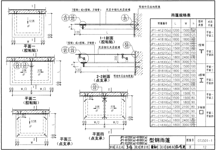 07J501-1钢雨篷(一)玻璃面板电子版高清图集内容截图