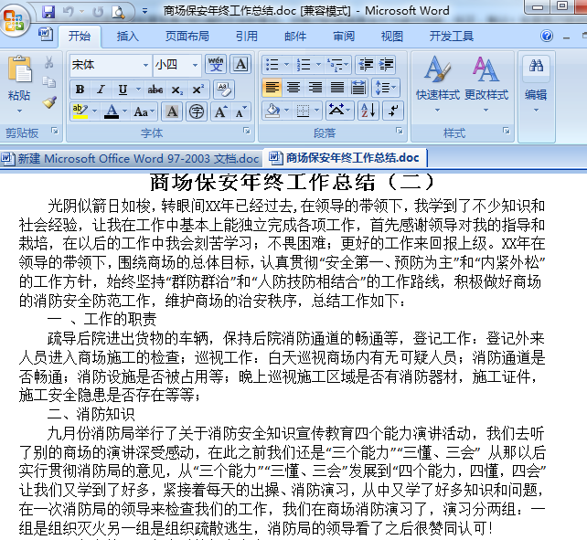 今天小编和大家分享的是商场保安年终工作总结,为doc格式,有需要的朋友可立即下载此文档。