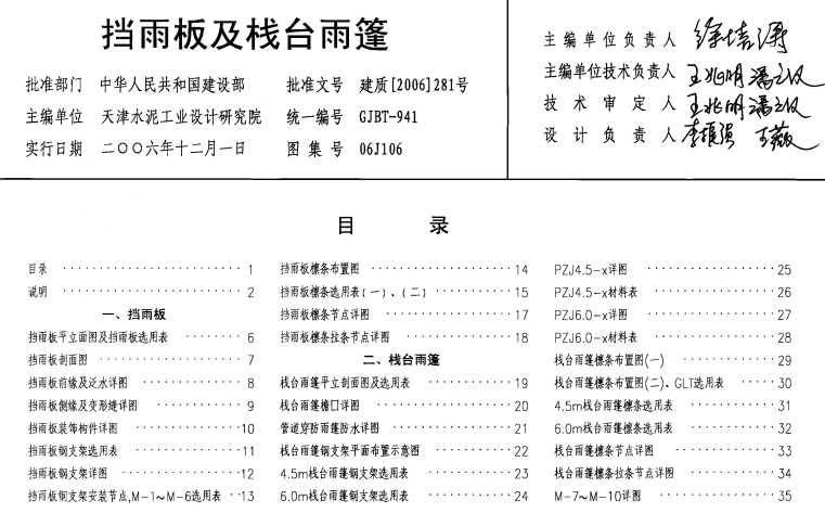 东坡下载站为大家整理带来的这份06J106挡雨板及栈台雨篷电子版图集是一份pdf格式高清免费版图集,该图集共有36页,图集字迹清晰,内容完整,有需要的朋友只需点击本文下方的下载地址即可获得这份06j106图集。