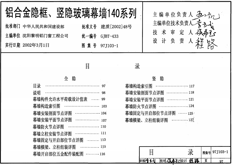 97J103-1铝合金玻璃幕墙高清电子版图集内容截图