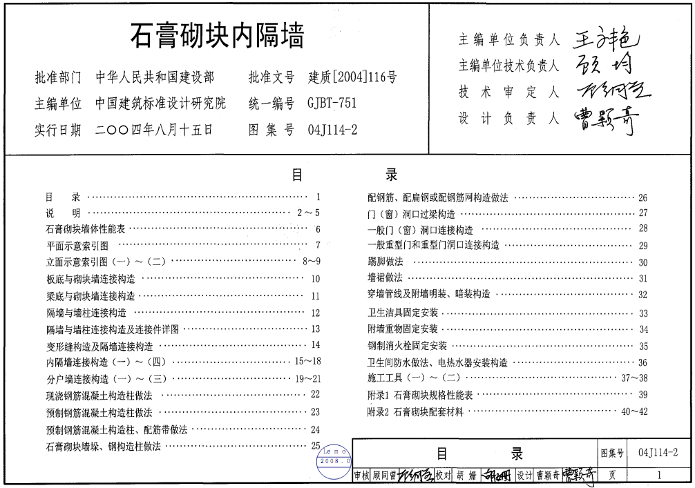 这是一份pdf格式高清免费版04J114-2石膏砌块内隔墙高清电子图集,该电子版图集共有54页,图集内容详细完整,有需要的朋友点击本文下方的下载地址即可查阅这份04J114-2石膏砌块内隔墙高清电子版图集哦!
