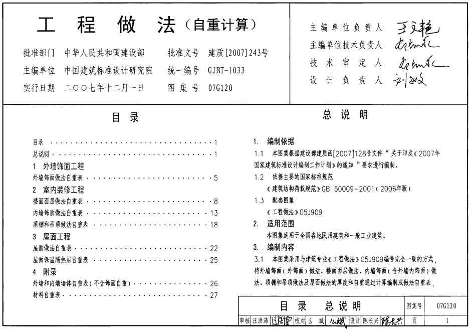 07G120工程做法(自重计算)高清电子版图集内容截图