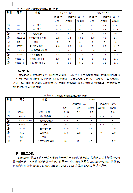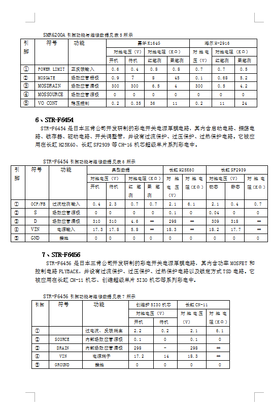 17种新型彩电开关电源脚厚膜集成电路资料部分截图