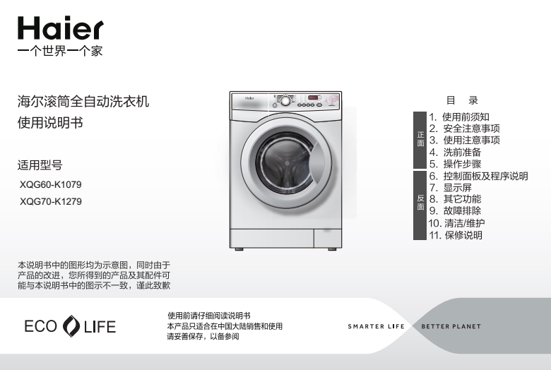 海尔xqg70 k1279是HPM芯平衡系列滚筒洗衣机,这里带来的是海尔xqg70 k1279滚筒洗衣机使用说明书,说明书是pdf格式文档,大家可以免费下载海尔xqg70 k1279说明书查看详细内容。