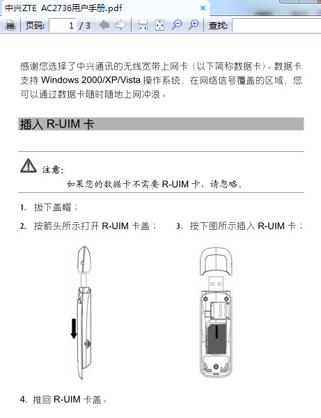 中兴ZTE AC2736上网卡使用说明书