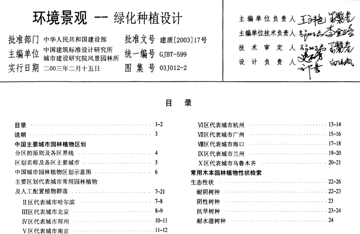 本节内容小编为大家带来的03J012-2环境景观(绿化种植设计)高清电子版图集共由94页组成,图集内容共由中国主要城市园林植物区划、常用木本园林植物性状检索、常用园林植物性状表三部分组成,有需要的朋友点击本文下方的下载地址即可获得这份03j0122图集。