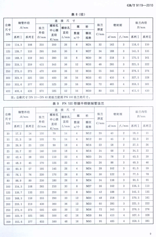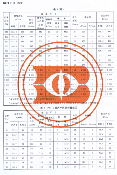 GB9119-2010T板式平焊钢制管法兰高清电子版图集内容节选