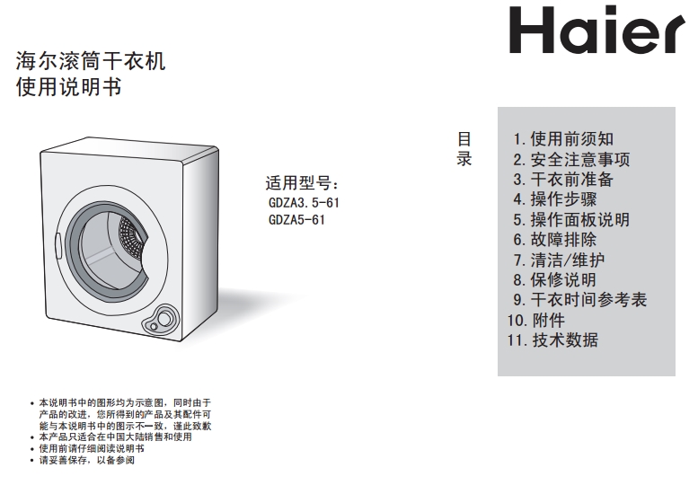 这里带来的是海尔GDZA5 61干衣机使用说明书,海尔GDZA5 61干衣机烘干容量为5公斤,大家可以免费下载海尔GDZA5-61说明书查看详细内容。