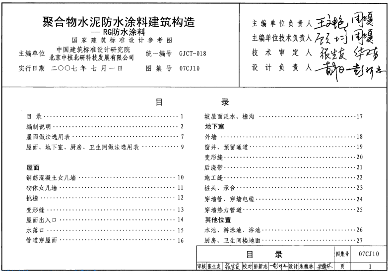 07cj10图集全称为国标07CJ10聚合物水泥防水涂料建筑构造(RG防水涂料)图集,本节内容小编为大家整理带来的这份电子版国标07cj10图集共有28页,图集内容完整详细,适用于一般民用与工业建筑的屋面、地下室、厨房、卫生间及游泳池、饮用水池等防水工程。欢迎有需要的朋友点击本文下方相应的下载地址进行下载查阅!