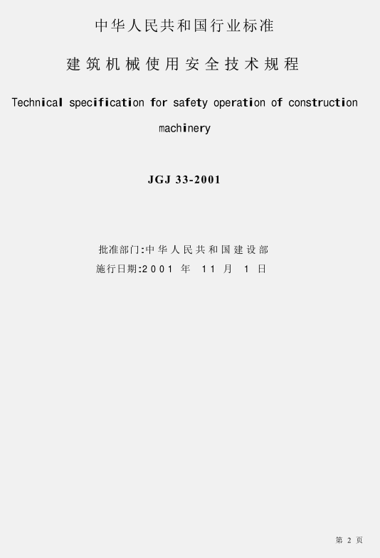 国标JGJ33-2001建筑机械使用安全技术规程高清电子版介绍