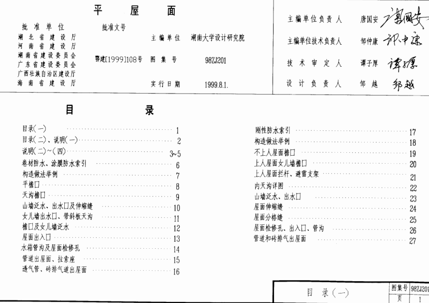 该pdf格式高清无水印版98ZJ201平屋面图集包括有保温隔热、隔汽的防水做法,上人和不上人屋面做法,适用于中南地区防水等级为Ⅰ~Ⅳ级得民用与工业建筑的钢筋砼平屋面。本图集共由40页组成,图集内容完整详细、清晰,适合打印使用,欢迎有需要的朋友进行下载查阅!