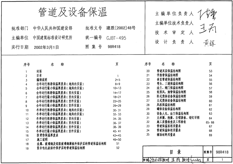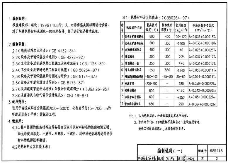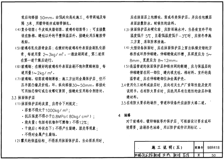 98R418管道及设备保温图集简称98r418图集,该图集适用于输送或储存介质温度为50-600℃,公称直径DN15-700mm的设备与管道(平壁)保温工程。本节内容小编为大家精选带来的这份98R418管道及设备保温图集为pdf格式免费高清电子版,内容完整详细,适合下载打印,有需要的朋友点击本文下方相应的下载地址进行下载查阅即可!