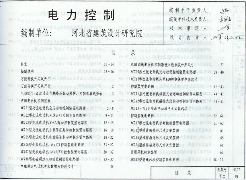 05系列建筑标准设计图集之05D7电力控制图集简称为05d7图集,本节内容小编为大家精选带来的这份05d7图集为pdf格式高清免费电子版,该图集适用于民用建筑及一般工业的电力传动控制装置的设计及安装施工。如果你需要一份这样的图集作为参考,点击本文下方相应的下载地址进行下载查阅即可!