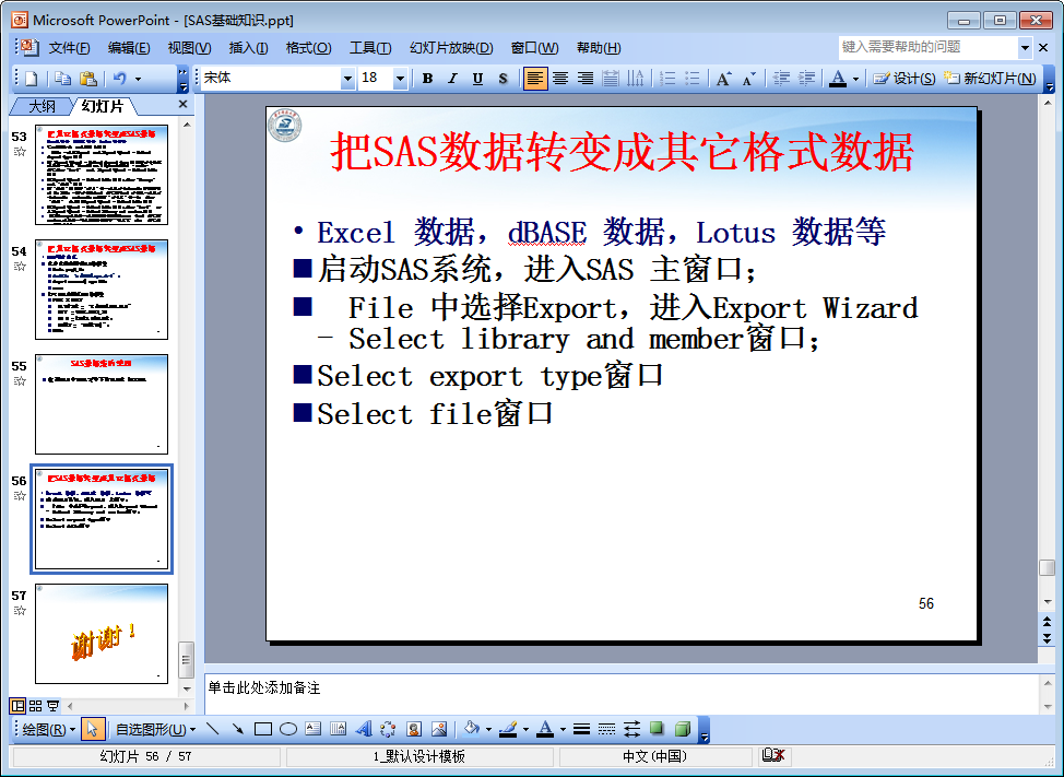 SAS全称为Software of Analysis System,它指的是一个大型的系统分析软件包——如果你想对它有更多的了解,那么不妨来看看这份sas基础教学ppt吧!该SAS基础知识ppt共有57页,适合作为sas知识培训或是课件使用,ppt中详细介绍了SAS的概念及基本使用方法等,内容完整详细,语言通俗易懂,想要对SAS有更多了解的朋友们,小编建议不要错过了这份ppt哦!