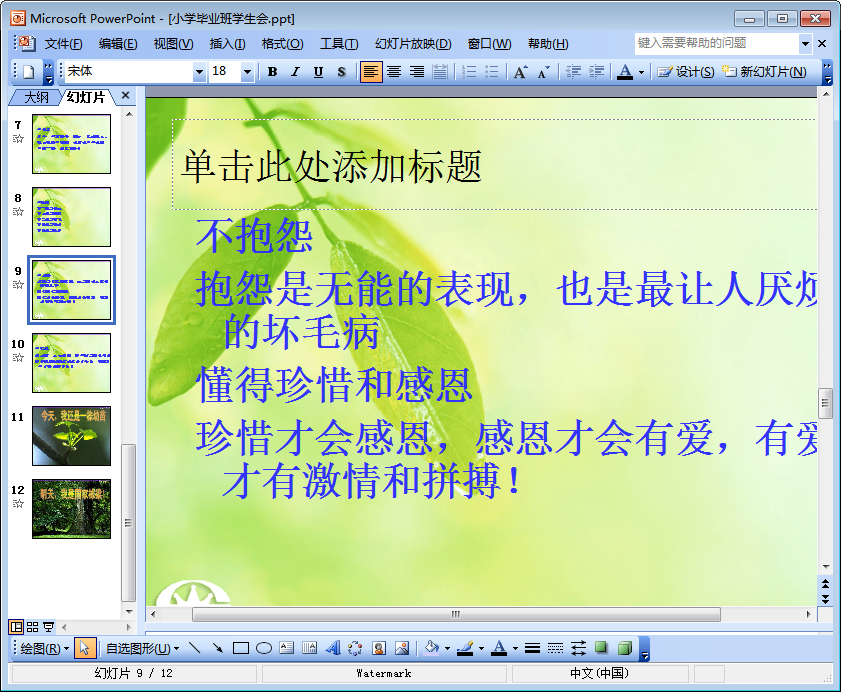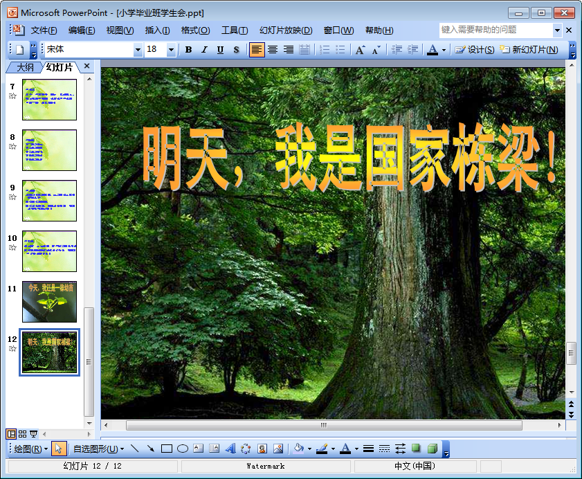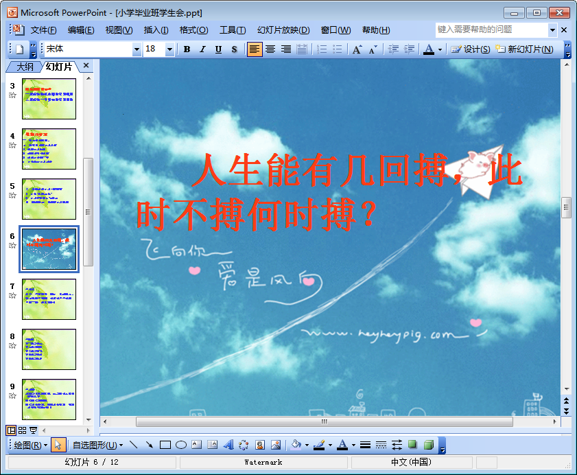 本节内容小编为大家整理带来的是小学毕业班班会ppt,该毕业班会ppt课件共有12页,ppt活泼生动,适合作为班会ppt课件使用,需要一份毕业班会ppt课件或是小学毕业班班会ppt的朋友们只需点击本文相应的下载地址进行下载即可哦!
