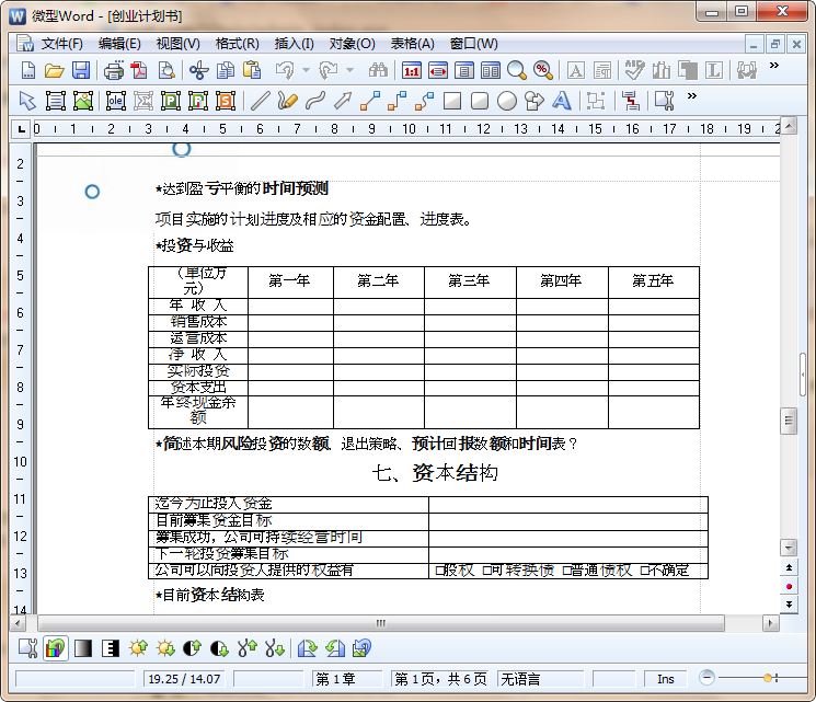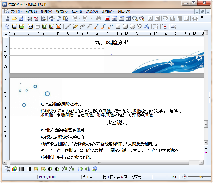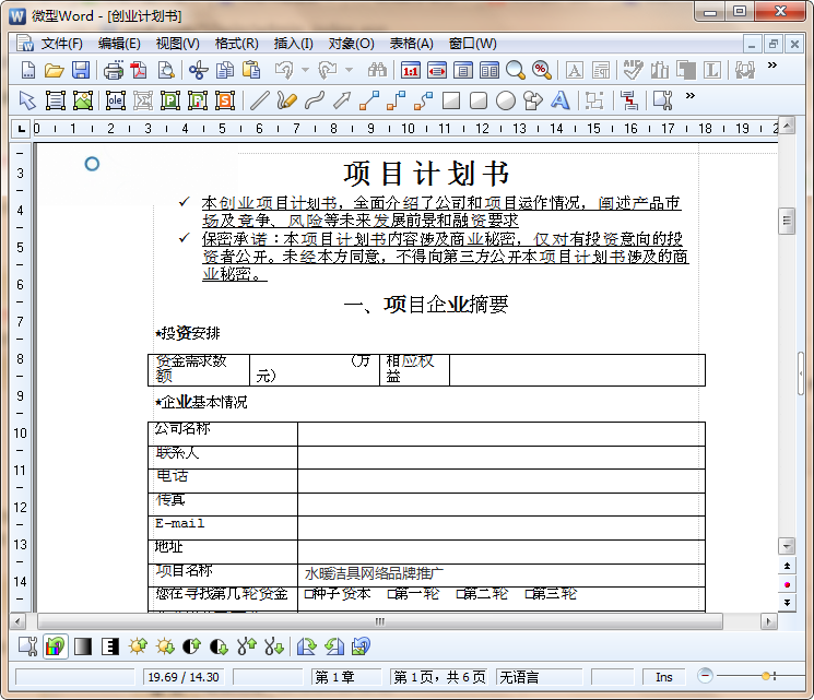 创业项目计划书范文内容截图
