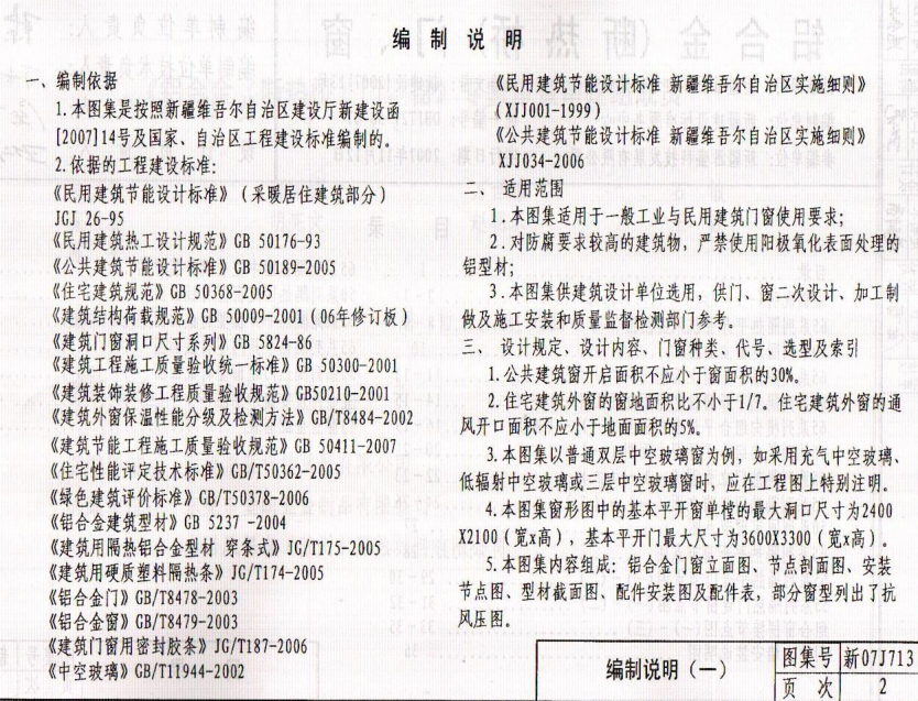 新07J713铝合金(断热桥) 门窗图集是一份适用于一般工业与民用建筑门窗使用要求的图集。该图集一般被简称为新07j713图集,是新疆维吾尔自治区地方标准图集之一。本节内容小编为大家整理带来的这份新07j713图集为pdf格式电子版,图集内容完整,字迹清晰,如果你需要这份图集的话,那就赶紧来下载吧!