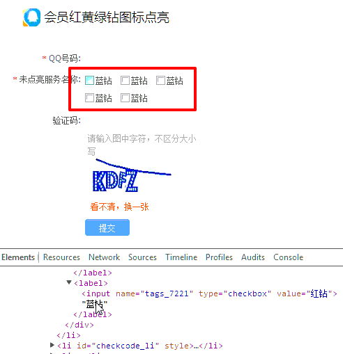 3、审查元素,把会员,红钻,黄钻等等全部改成蓝钻