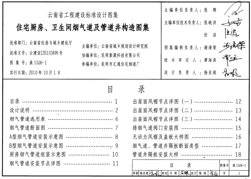 本图集适用于云南省新建多层、中高层及高层住宅厨房和卫生间竖向排烟气道产品的选用和施工安装,以实现住宅厨房排除油烟和住宅卫生间排除污浊空气的功能。旧有住宅厨房卫生间竖向排烟气道改造可参照适用。