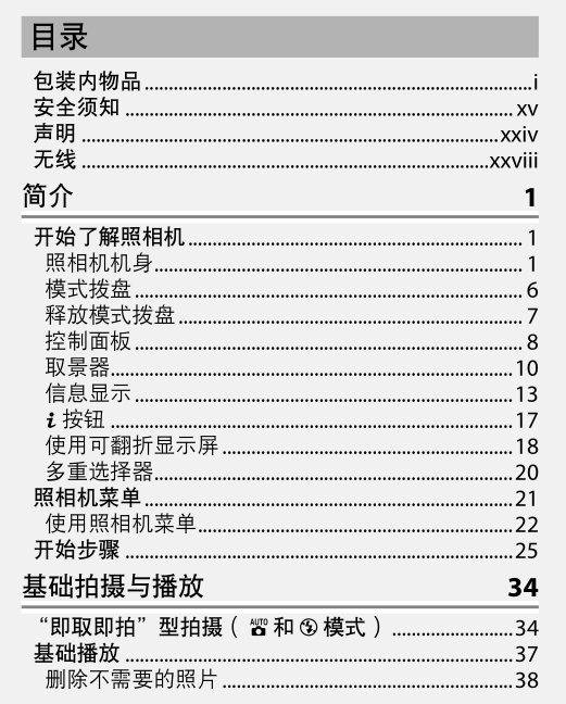 尼康D750说明书内容截图