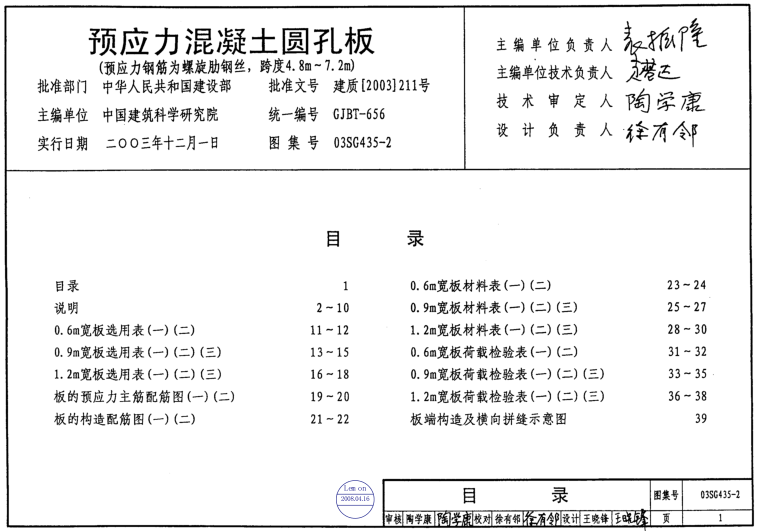 03SG435-2预应力混凝土圆孔板图集,全称为3SG435-2预应力混凝土圆孔板(预应力筋为螺旋肋钢丝 跨度为4.8m-7.2m),该图集适用于环境类别为一类及二a类的工业与民用建筑的楼板及屋面板,一般被简称为03sg4352图集。点击本文相应的下载地址进行下载后,你将会获得一份pdf格式高清晰版由42页组成的03sg4352图集,所以,如果你需要一份03sg4352图集作为参考资料的话,那就赶紧来东坡下载吧!
